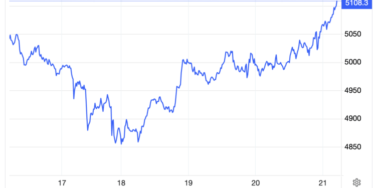 Với phiên tăng này, giá vàng tái lập mốc chủ chốt 5.100 USD/oz và hoàn tất một tuần đi lên…