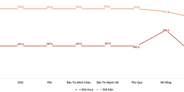 Mức giá giao dịch 167,5 triệu – 171 triệu đồng/lượng