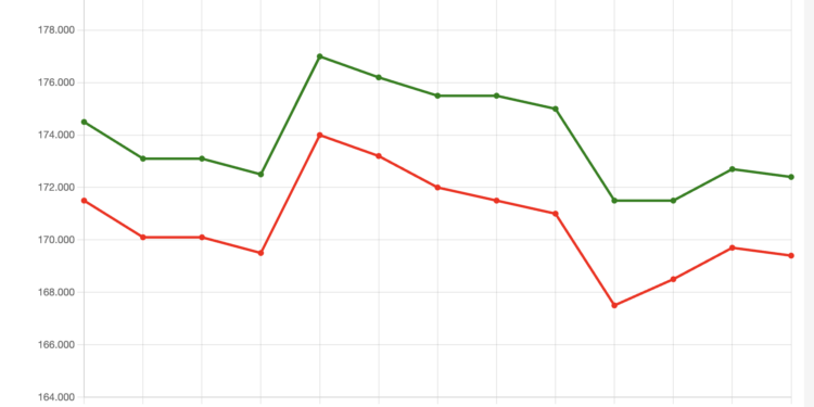 – 172,4 triệu đồng/lượng, tăng 400 nghìn đồng/lượng mỗi chiều. Chỉ trong hai phiên