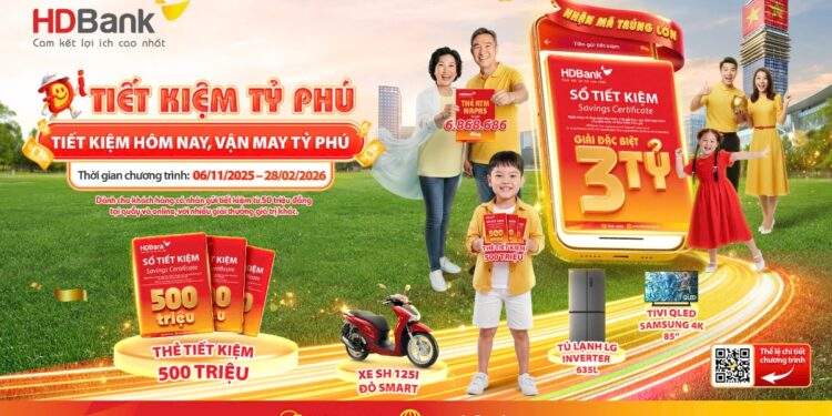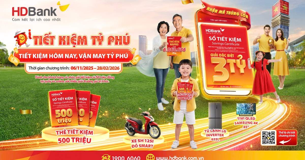 HDBank chính thức triển khai chương trình tiết kiệm dự thưởng mang tên “Tiết kiệm Tỷ phú” với giải thưởng đặc biệt chưa từng có, lên tới 3 tỷ đồng dành cho khách hàng cá nhân trên toàn quốc, cùng nhiều cơ hội hấp dẫn khác như trúng xe máy SH, Smart Tivi, robot hút bụi, và hàng ngàn quà tặng độc đáo, giá trị.