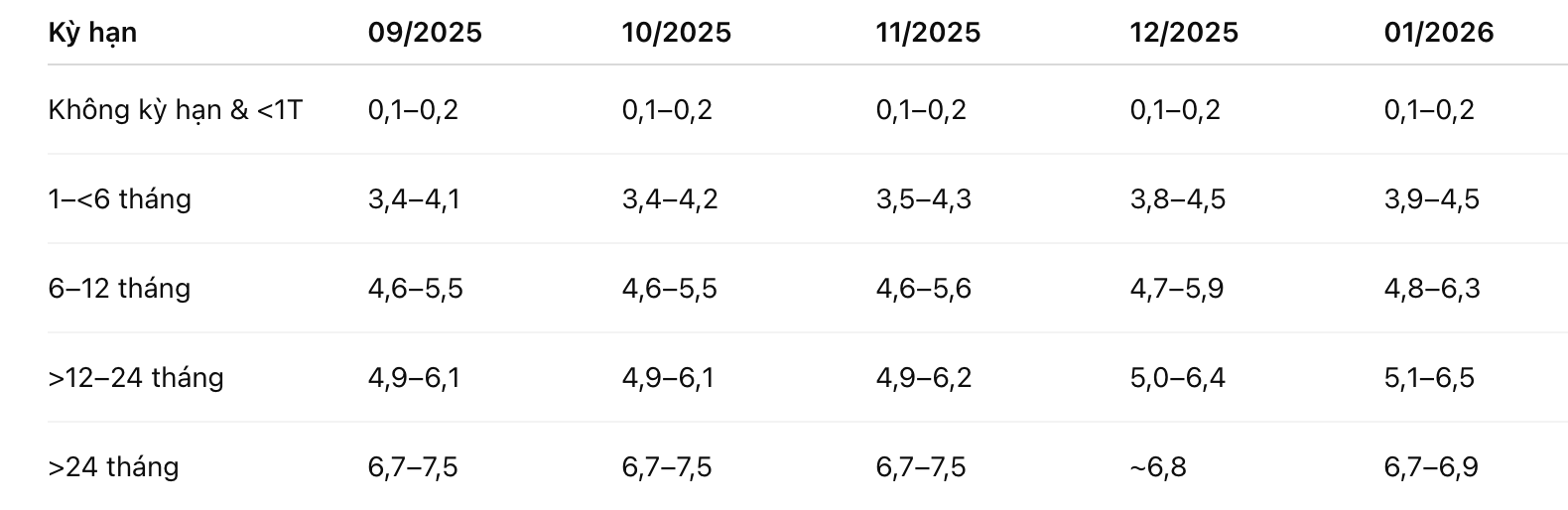 tháng từ 9 đến 11/2025, lãi suất huy động VND chỉ điều chỉnh nhẹ, biên độ tăng