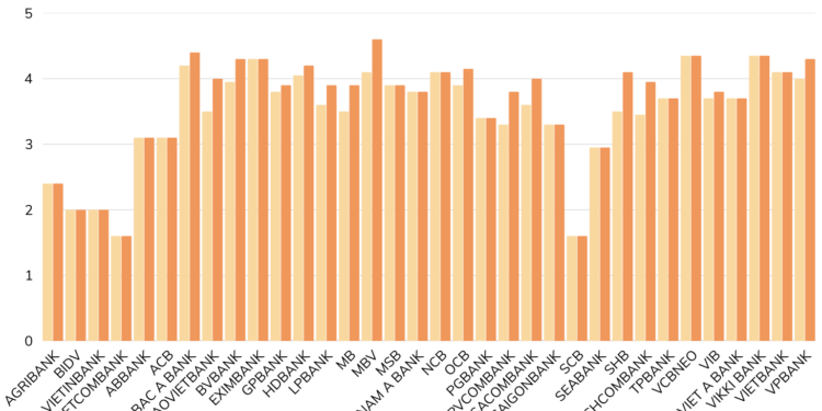 Ngoại trừ một số ngân hàng như Vikki Bank, VCBNeo, HDBank, Techcombank và PGBank điều chỉnh giảm từ 0,1–0,5 điểm phần trăm so với kỳ hạn 6 tháng thì các ngân hàng còn lại vẫn giữ nguyên xu hướng đi ngang hoặc tăng nhẹ. Biên độ chênh lệch giữa ngân hàng cao nhất và thấp nhất vẫn duy trì ở mức 2,95 điểm phần trăm.