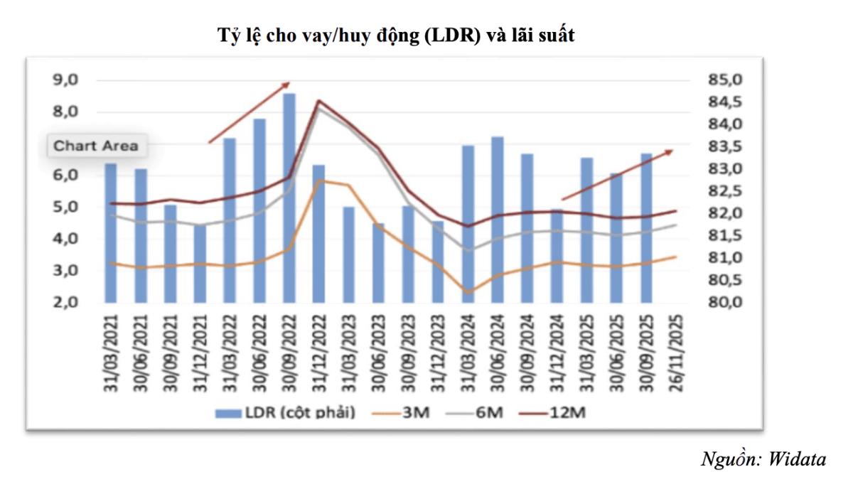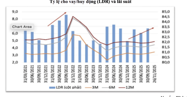 cuối quý III/2025, hệ số LDR (cho vay/huy động) toàn ngành đã lên tới 111%,