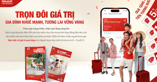 Với tinh thần đó, Generali Việt Nam triển khai chương trình khuyến mãi “Trọn đôi giá trị, Gia đình khỏe mạnh, Tương lai vững vàng”, dành cho những khách hàng tham gia Bảo hiểm Liên kết chung VITA – Ngày Mai Vững Chắc kết hợp cùng sản phẩm bán kèm Bảo hiểm Sức khỏe Cá nhân 2025 VITA – Sức Khỏe Vàng/ Kim Cương.
