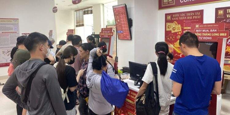 Nhiều người chờ mua vàng tại Bảo Tín Minh Châu