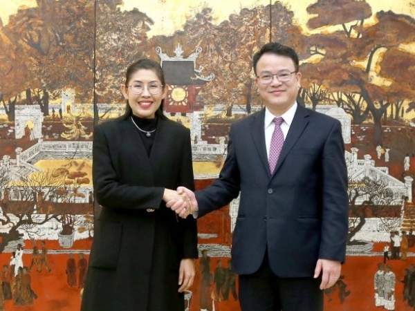 | Thứ trưởng Trần Quốc Phương tiếp Đại sứ Thái Lan tại Việt Nam, bà Urawadee Sriphiromya. Ảnh: Đức Minh |