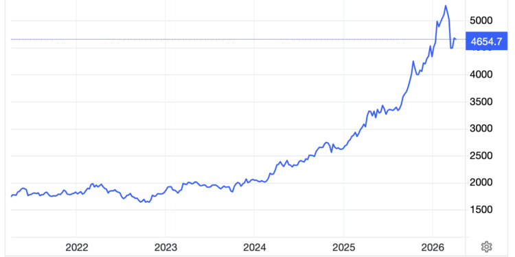 Lúc đóng cửa tại thị trường New York, giá vàng giao ngay dừng ở mức 4.649,5 USD/oz, giảm 28,5 USD/oz so với mức chốt của phiên trước, tương đương giảm 0,6% – theo dữ liệu từ sàn giao dịch Kitco.