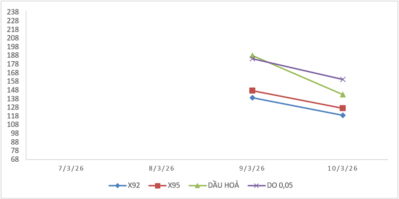Nga với Ucraina vẫn diễn ra… Các yếu tố nêu trên khiến giá xăng dầu thế giới trong ngày 10/3/2026 giảm xuống so với ngày 09/3/2026.