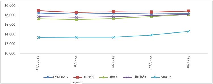 22/01/2026 và kỳ điều hành ngày 29/01/2026 là: 71,468 USD/thùng xăng RON92 dùng