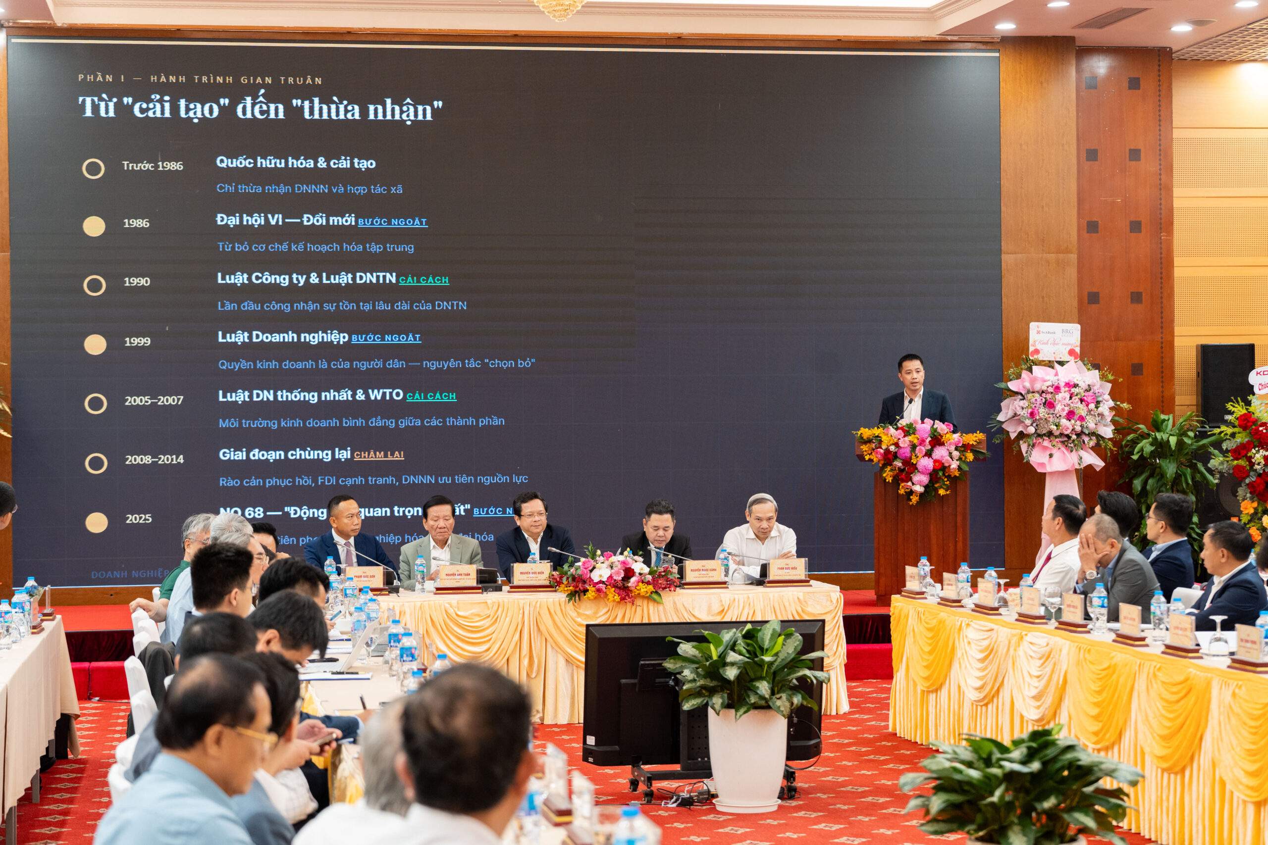 Đại diện VCCI cho biết trước đây muốn mở công ty phải qua rất nhiều cơ quan, xin nhiều chữ ký, đóng nhiều con dấu, mất nhiều tháng và tốn kém lớn. Quyền kinh doanh bị giới hạn trong phạm vi cơ quan nhà nước cho phép. Đến nay, Việt Nam đã có hơn một triệu doanh nghiệp đang hoạt động chính thức và khoảng 5 triệu hộ kinh doanh. Khu vực kinh tế tư nhân đóng góp khoảng 50% GDP, tạo ra phần lớn việc làm, và một số tập đoàn tư nhân đã có vị trí đáng kể trên thị trường trong nước cũng như bắt đầu mở rộng ra khu vực và thế giới. Nghị quyết 68-NQ/TW của Bộ Chính trị năm 2025 xác định kinh tế tư nhân là “một động lực quan trọng nhất” và là “lực lượng tiên phong” trong công nghiệp hóa, hiện đại hóa đất nước.