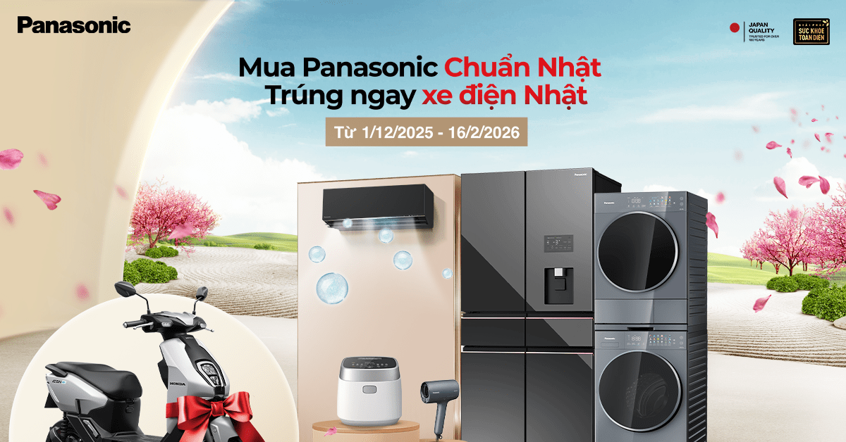 Cụ thể, từ ngày 01/12/2025 đến ngày 16/02/2026, khách hàng khi mua các sản phẩm Panasonic nằm trong danh mục áp dụng tại các Đại lý thuộc chương trình sẽ được tham gia chương trình ưu đãi “Mua Panasonic Chuẩn Nhật – Trúng ngay xe điện Nhật” với cơ hội trúng xe máy điện Honda ICON-e phiên bản đặc biệt kèm pin, trị giá hơn 36 triệu đồng/ giải thưởng.