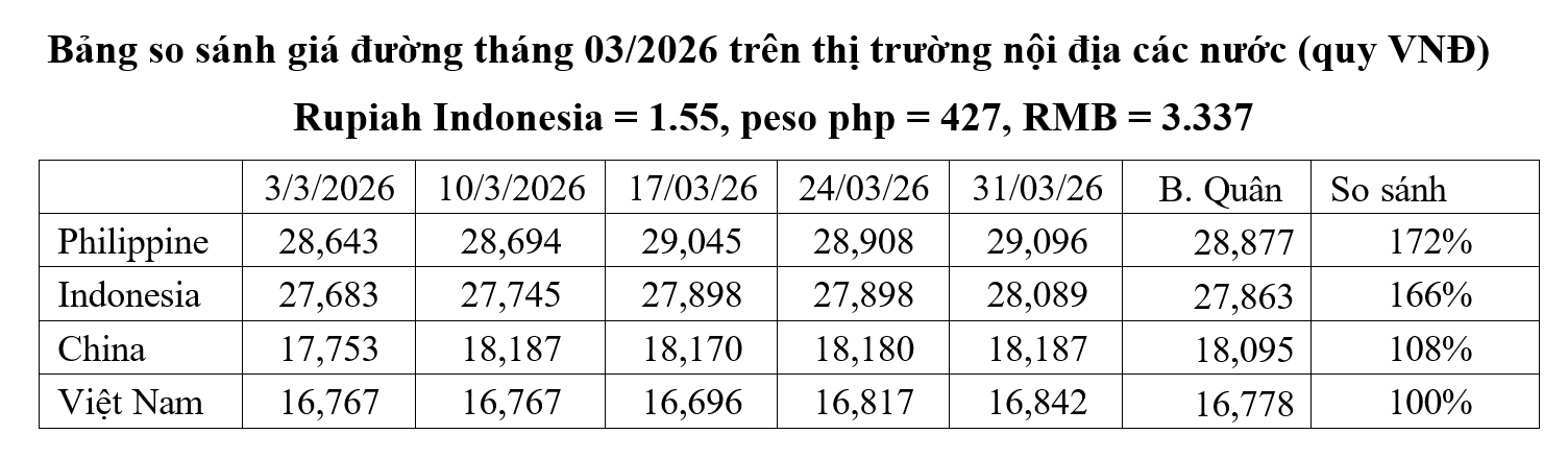 tháng 2/2026. Trong khi đó, giá đường trắng trung bình theo chỉ số ISO đạt