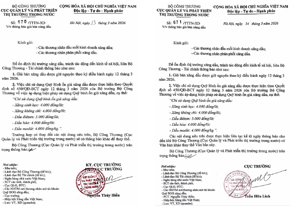 14/3/2026, Bộ Công Thương quyết định tiếp tục giữ nguyên giá