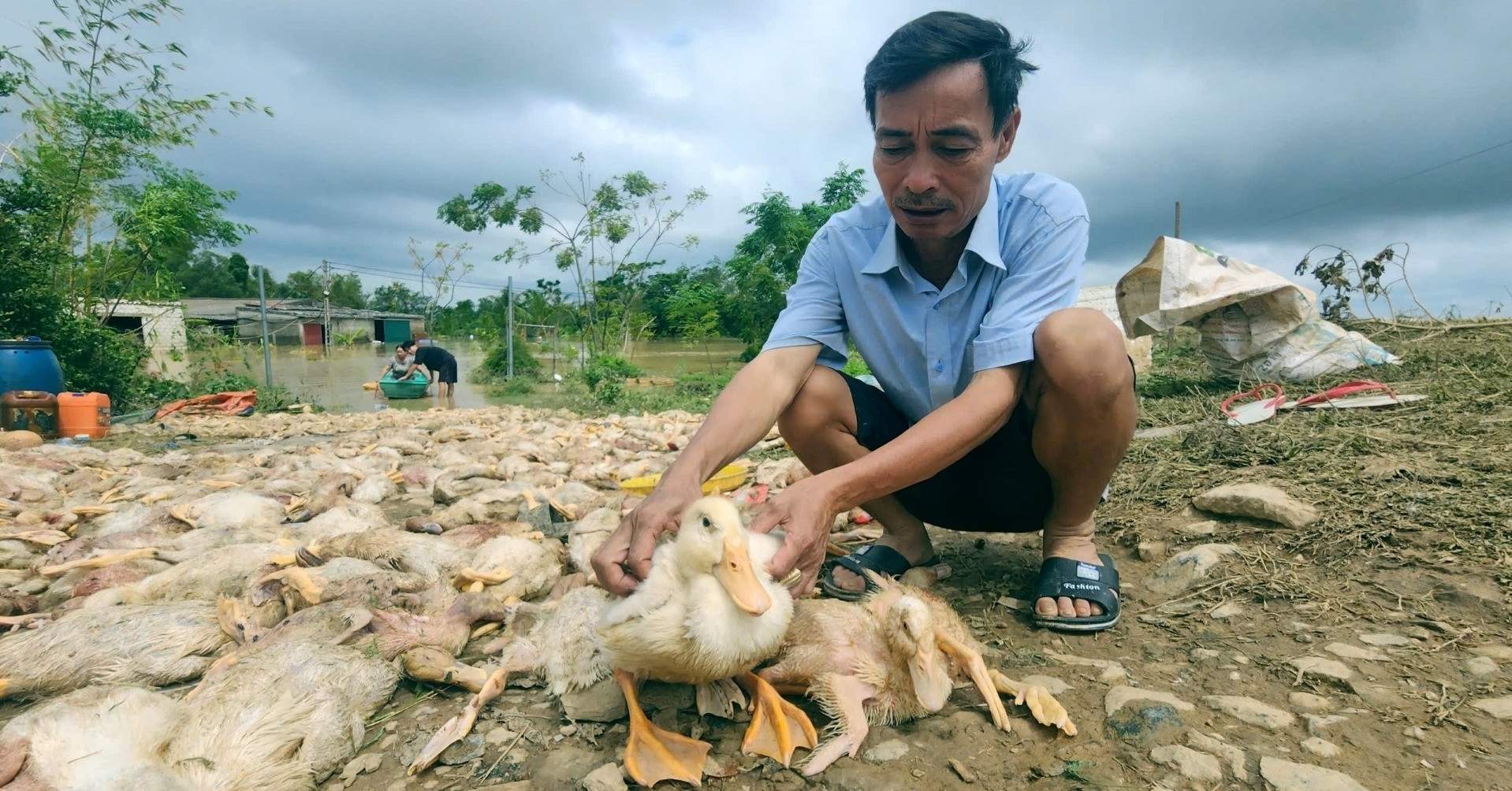 Sau khi bão số 10 càn quét qua Thanh Hóa, nhiều hộ chăn nuôi gia cầm lâm vào cảnh trắng tay. Gia đình ông Kiều là một trong những hộ chịu thiệt hại nặng nề nhất khi hơn 13.000 con vịt chết ngạt. Chuồng trại cùng toàn bộ thức ăn cho vịt cũng bị hư hỏng.