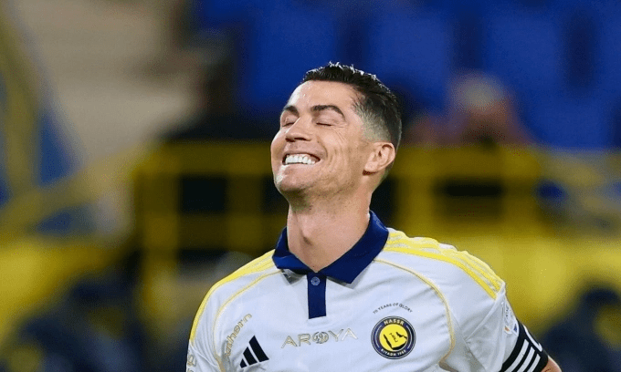 Ronaldo celebrates after scoring in the match between Al Nassr and Al Khaleej at Al Awwal Park, Riyadh, Saudi Arabia on May 21, 2025. Photo by Facebook/Cristiano Ronaldo