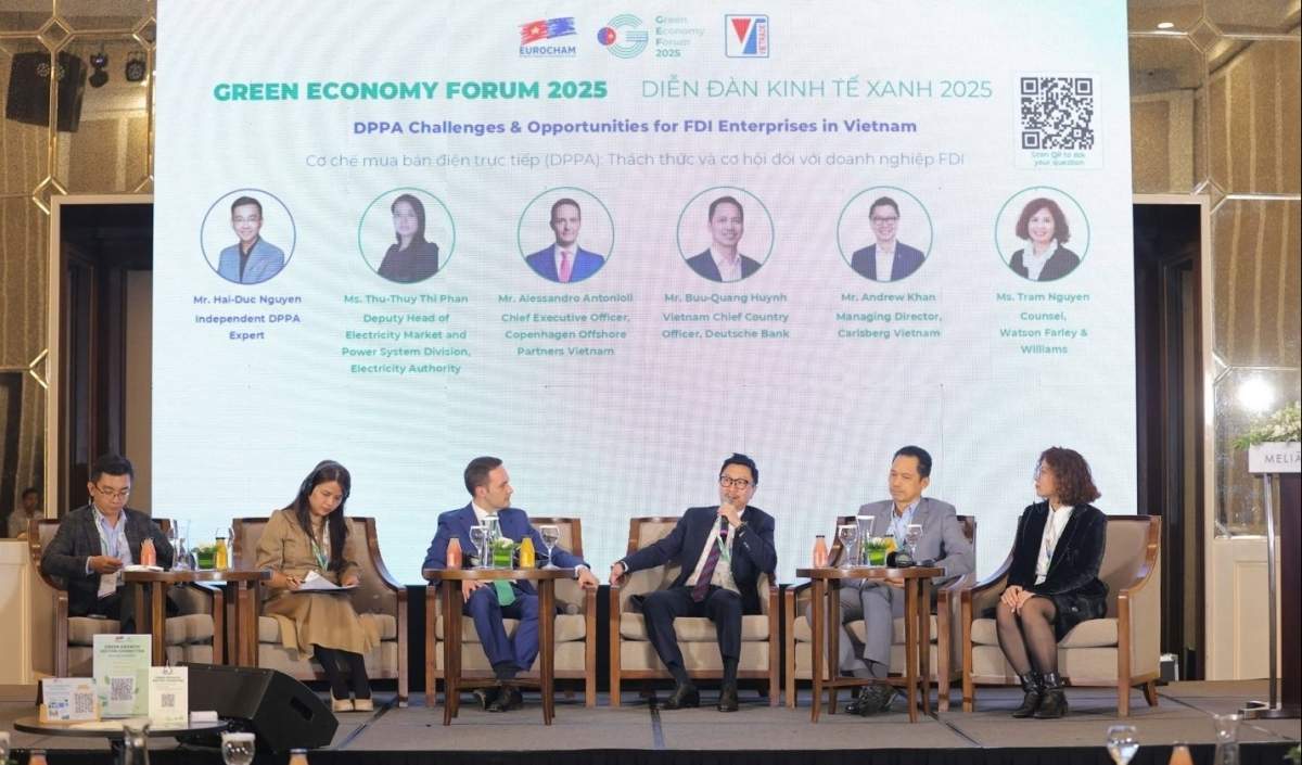 | Managing director Andrew Khan shared Carlsberg Vietnam’s approach to renewable-energy transition during the DPPA panel at the Green Economy Forum 2025 |