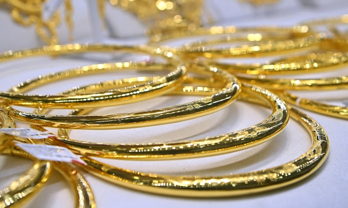 Gold jewelry seen at a shop in Hanoi. Photo by VnExpress/Giang Huy |