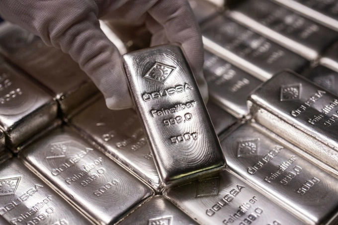 Silver bars weighing 500 grams are displayed at the Austrian Gold and Silver Refinery (Oegussa) in Vienna, Austria, on February 3, 2026. Photo by AFP |