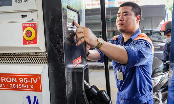 A worker operates a fuel dispenser at a station in HCMC. Photo by VnExpress/Thanh Nguyen |
