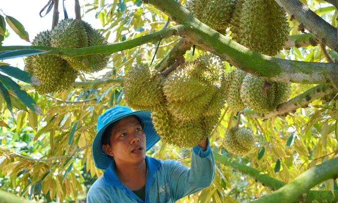 Durians at an orchard in the former Mekong Delta province of Long An. Photo by VnExpress/Hoang Nam |