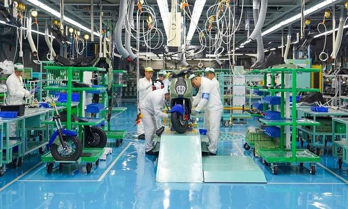 Electric motorbike manufacturing in a factory of Honda Vietnam in Vinh Phuc Province, March 2025. Photo by Nguyen Linh |