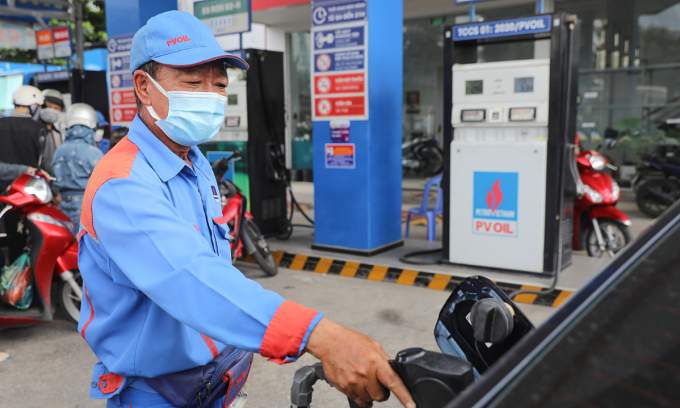 An employee refuels at car at a fuel station in HCMC in September 2022. Photo by VnExpress/Quynh Tran |