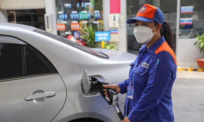 An employee refills a car at a fuel station in HCMC. Photo by VnExpress/Quynh Tran |