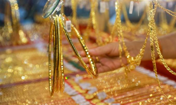 A person holds gold jewelry at a shop in Ho Chi Minh City. Photo by VnExpress/Quynh Tran |