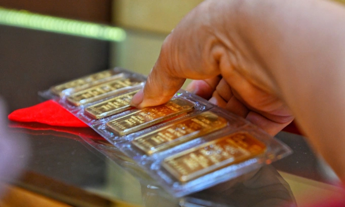 A person holds gold bars in Hanoi. Photo by VnExpress/Giang Huy