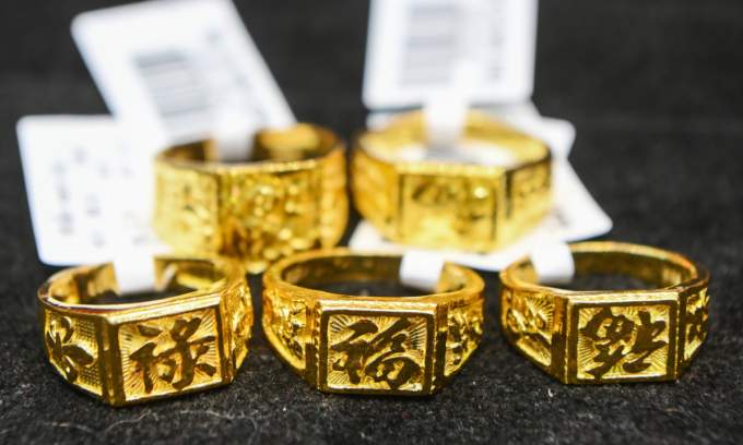 Gold rings seen in a shop in Hanoi. Photo by VnExpress/Giang Huy