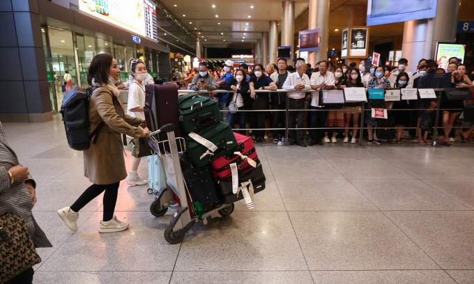 Passengers move their baggage on a trolley at Tan Son Nhat International Airport in. Ho Chi Minh City, January 2023. Photo by VnExpress/Quynh Tran |