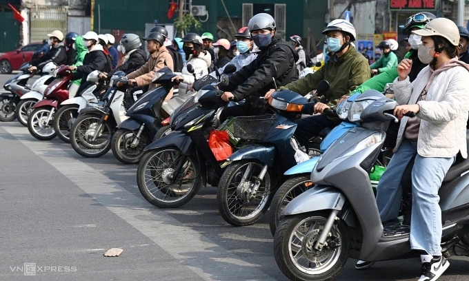 Motorbike riders seen in Hanoi, Photo by VnExpress/Giang Huy |