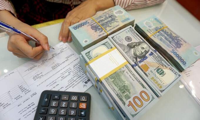 U.S. dollar and Vietnamese dong banknotes seen at a bank in Ho Chi Minh City. Photo by VnExpress/Anh Tu