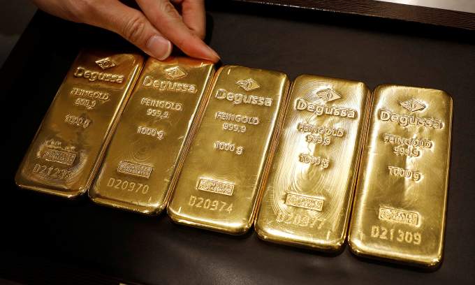 An employee shows gold bullion at Degussa shop in Singapore, June 16, 2017. Photo by Reuters |