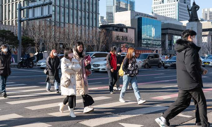 People cross the street at Gwanghwamun Square on Dec. 30, 2022, in Seoul, South Korea. Photo by Kichul Shin via Reuters |