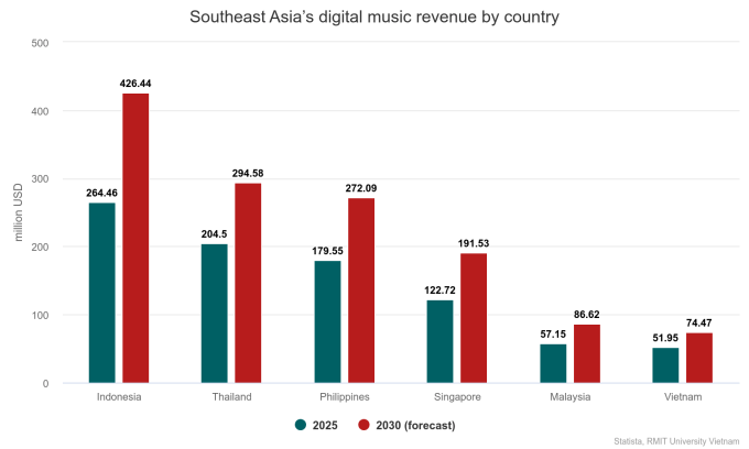 In the number of users, its digital music market is expected to rank fourth in Southeast Asia by 2030 at 12.57 million, meaning people will spend an average of $5.44.