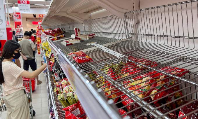 Supermarket shelves were emptied by Wednesday noon in the south-central provinces of Gia Lai and Dak Lak as people bought and stockpiled food before Typhoon Kalmaegi makes landfall.