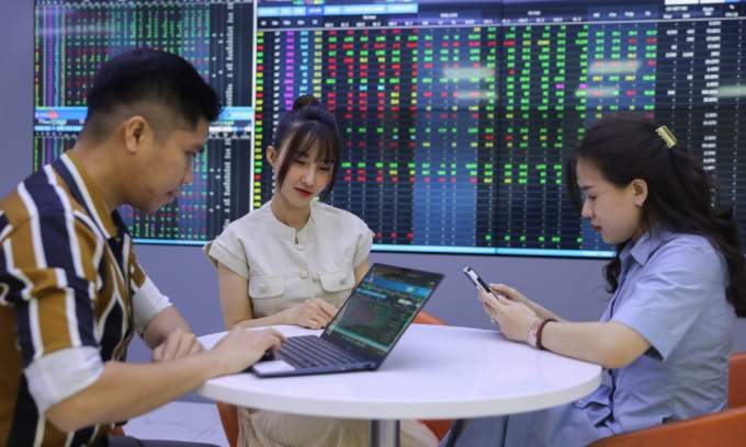 Stock investors seen at a brokerage in HCMC. Photo by VnExpress/Quynh Tran