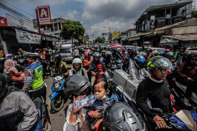 Motorists commute in a traffic jam in Bogor on April 25, 2023, as people return to the cities after celebrating the Eid al-Fitr holiday. Photo by AFP