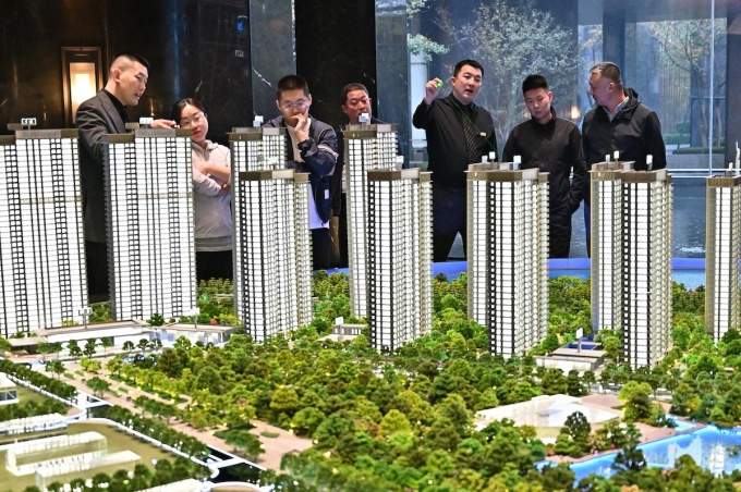 People checks property models at a real estate sales office in Taiyuan City, north China’s Shanxi Province, Dec. 8, 2025. Photo by Imaginechina via AFP