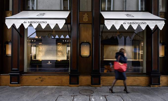 A woman walks past a jewelry store in Geneva on January 29, 2020. Photo by AFP