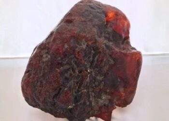 Một khối hổ phách hóa thạch vô cùng quý giá, trông giống như một tảng đá. Đây là khối rumanite...